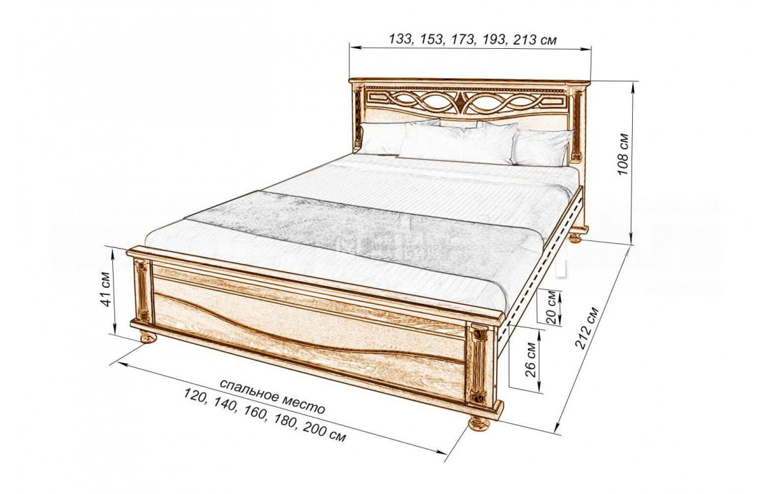 Оригинальная кровать Мелиса из берёзы отличается узорчатым изголовьем и низким изножьем. Модель, которую можно купить по выгодной цене в нашем интернет-магазине, оснащена аккуратными ножками для защиты напольного покрытия, а также обработана специальным лаком для увеличения срока службы изделия. Осуществляется доставка на дом по Прокопьевску и Кемеровской области .| Размер | Цена | |