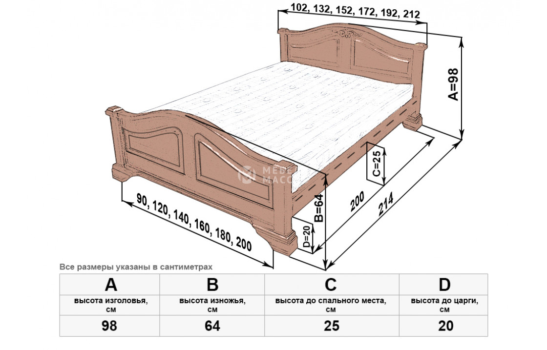 Королевская кровать Европа мод 1 изготовлена из натурального древесного массива. Модель имеет прочную конструкцию и благородный вид. Изделие, которое можно купить по выгодной цене в нашем интернет-магазине, отличается сплошными симметричными волнообразными спинками, переходящими в устойчивые ножки. Осуществляется доставка на дом по Прокопьевску и Кемеровской области .| Размер | Цена | |